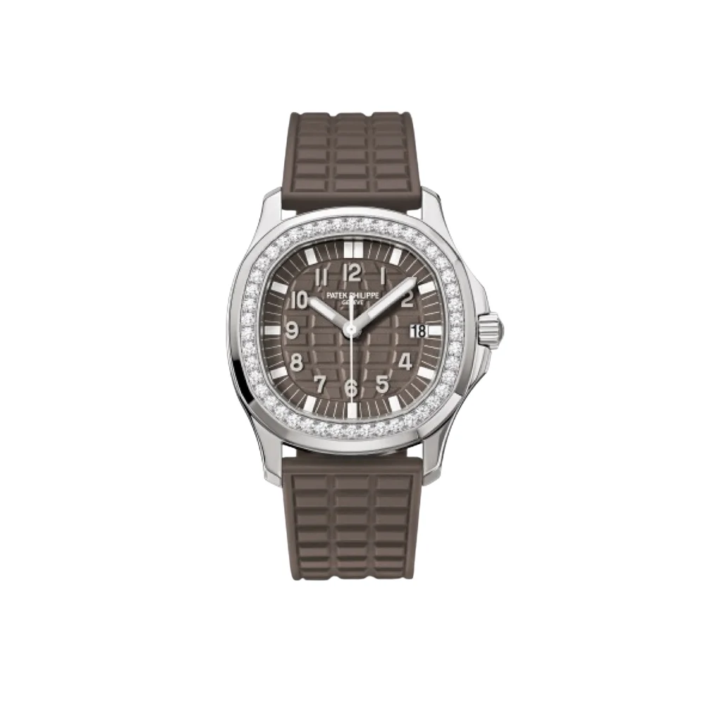 The Aquanaut Luce Brown Ladies' is specially designed with a feminine touch, the 36.6mm stainless steel case features the brand's signature octagonal shape and elegant diamond bezel. It is finished with a brown embossed composite strap, a brown dial with luminous white numerals, and a date indicator at 3 o'clock.